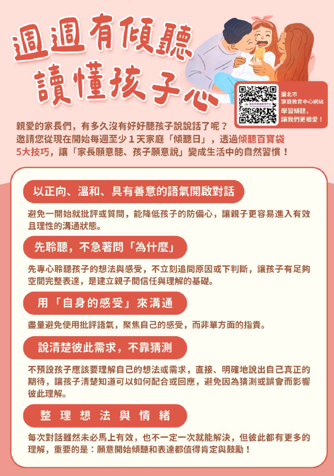 家庭「傾聽日」-週週有傾聽,讀懂孩子心