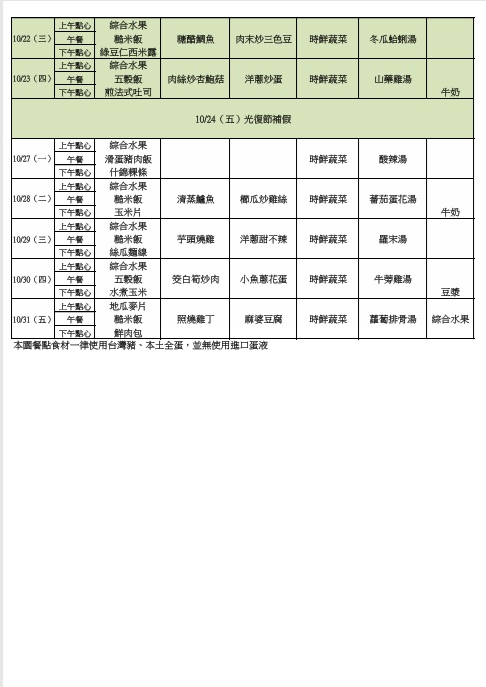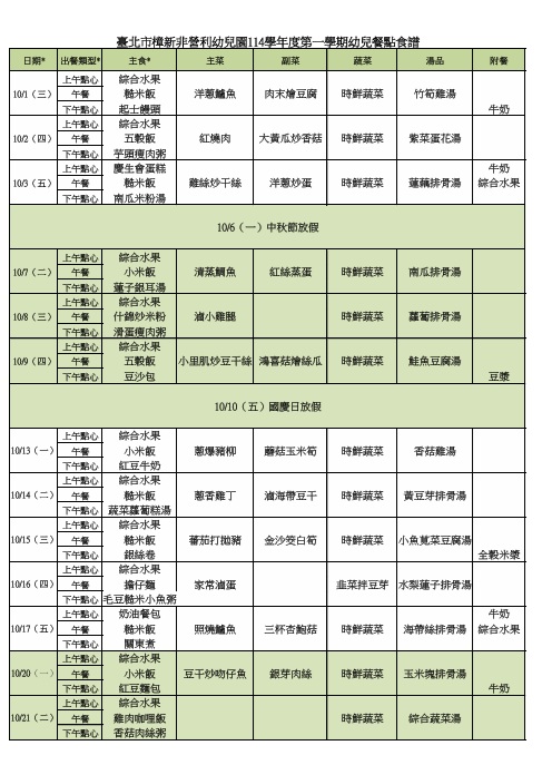 114.10月餐點表
