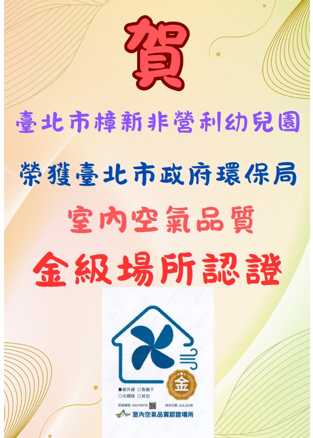 ★賀★樟新非營利幼兒園獲得金級場所認證